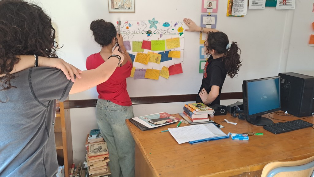 L’attività principale, il BiblioLab, ha visto gli studenti impegnati nella gestione della biblioteca: riordino degli scaffali, creazione di cartelli guida, classificazione e catalogazione dei nuovi titoli tramite la scansione degli ISBN. Un gruppo ha curato la redazione digitale, aggiornando sito web e bacheche digitali (Padlet) con recensioni e consigli di lettura, mentre un altro ha realizzato materiali visivi per la comunicazione cartacea.